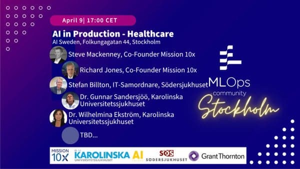 All right!!! By popular demand, we will run our next meetup already April 9 and this time focusing on "AI in Production - Healthcare". We will look at the challenges we're facing when we move from AI point-solutions in medical practice to achieving AI in production for healthcare at system-level. Event Program \- Doors open at 17:00 CET \- Talks begin at 17:45 CET \- There will be light food & drinks \- And this time\, there really will be a moderated Q&A session\!\!\! Agenda **P