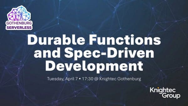 Join us for another Gothenburg Serverless meetup, this time hosted by Knightec at their office in Lindholmen. Two sessions covering topics at the intersection of serverless and modern AI-assisted development, followed by networking. Food and drinks provided. Space is limited, so register early. Schedule 17:30 - Doors open, food, drinks, and networking 18:00 - Presentations begin Session 1: Spec-Driven Development for Serverless Isak Holmdahl, System Developer, Knightec Spec-Driven Deve