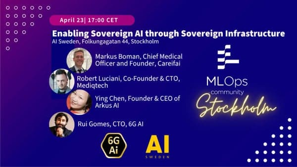 All right!!! Our sixth meetup of 2026 will take place April 23! This time, we'll team up with local Swedish sovereign AI Factory 6G AI and once again meet up at AI Sweden! Our focus for this meetup is on how local Swedish start-ups leverage sovereign infrastructure to create truly sovereign ai applications. Event Program \- Doors open at 17:00 CET \- Talks begin at 17:45 CET \- There will be light food & drinks \- There may be a moderat